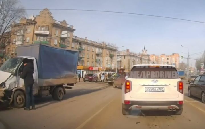 На центральном перекрёстке Луганска полицейская машина «снесла» грузовик на скорости: водитель «газели» в больнице