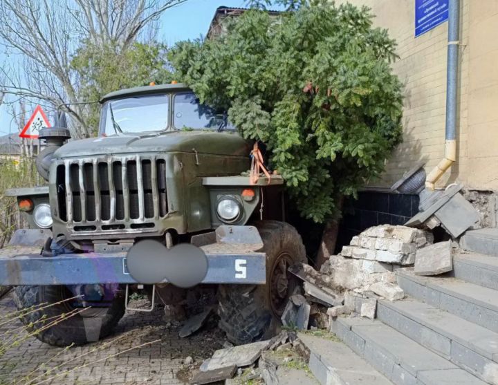 В Луганске грузовик врезался в здание художественного музея, повредив его фасад