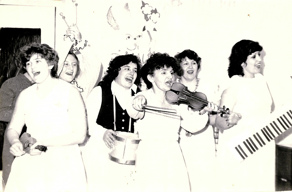 Воспитатель – и чтец, и на дуде игрец (смотр воспитателей, начало 90-х). Елена Сергеевна первая слева