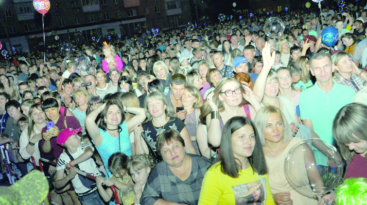 Стрелки часов приблизились к заветным 19.00, людей на площади Мира становилось все больше. Ведь пришло время самой ожидаемой части празднования – концерт с участием звезд РФ. В начале программы свои музыкальные поздравления зрителям дарили артисты Театра эстрадной музыки и песни из г. Луганск под руководством заслуженного работника культуры Георгия Снаговского. Музыка в живом исполнении и звонкие голоса вокалистов просто завораживали. Аплодисменты не заставляли себя ждать, а некоторые свердловчане даже подтанцовывали и подпевали им.
