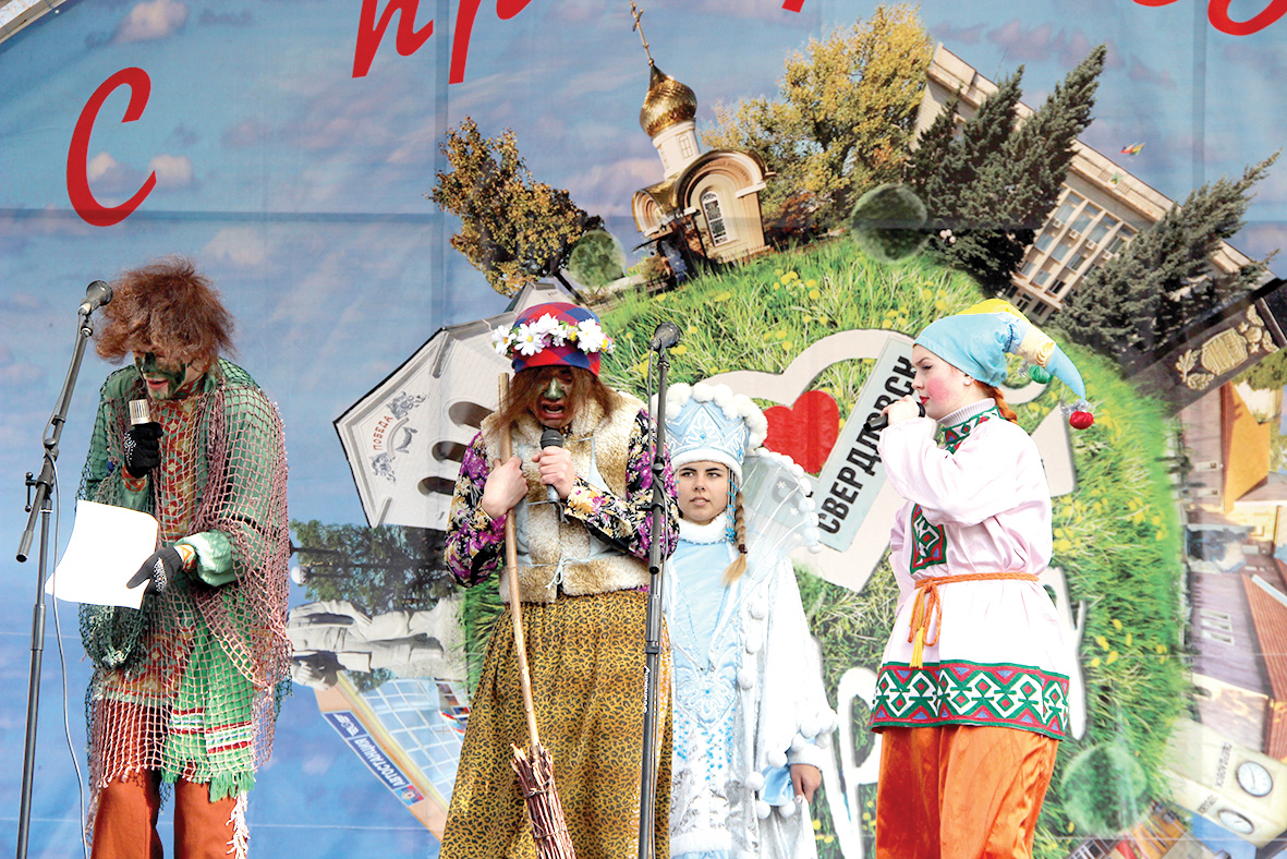 На сцене появились ведущие, чтобы поприветствовать всех, кто пришел. Они поздравили свердловчан с праздником и пожелали всем хорошо провести этот день. Программа была насыщенная и интересная: выступали творческие коллективы дворца, также зашли на праздник сказочные герои. Их появлению особенно радовались дети, и старались подойти как можно ближе к сцене. С особым любопытством наблюдали за разборками между Бабой-Ягой и Кощеем. А их шуточки пришлись по нраву даже взрослым. На что только ни шла красотка, чтобы привлечь своего спутника: даже исполнила восточный танец. Конечно же, в такой момент взор Кощея был полностью сфокусирован на озорной бабушке. А дальше появлялись скоморохи, Зима и, конечно же, виновница торжества – Весна-красна. Артисты по-настоящему вжились в свои роли, что только усиливало впечатление от их выступления.