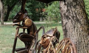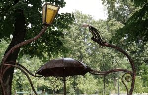 Две авторские кованые лавочки, изготовленные художником-кузнецом Олегом Безугловым, установлены в парке имени Горького в качестве дополнения к Аллее зонтиков. Одна содержит в себе фигурки героев книги "Алиса в стране чудес", другая выполнена в форме двух сердец.