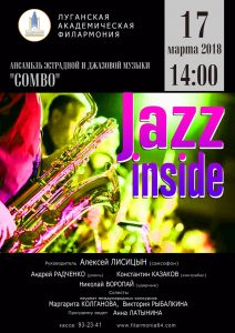 17 марта в 14:00 – концерт ансамбля эстрадной и джазовой музыки «Combo» «Jazz inside» /Джаз внутри/. Солисты – лауреат международных конкурсов Маргарита Колганова и Виктория Рыбалкина.