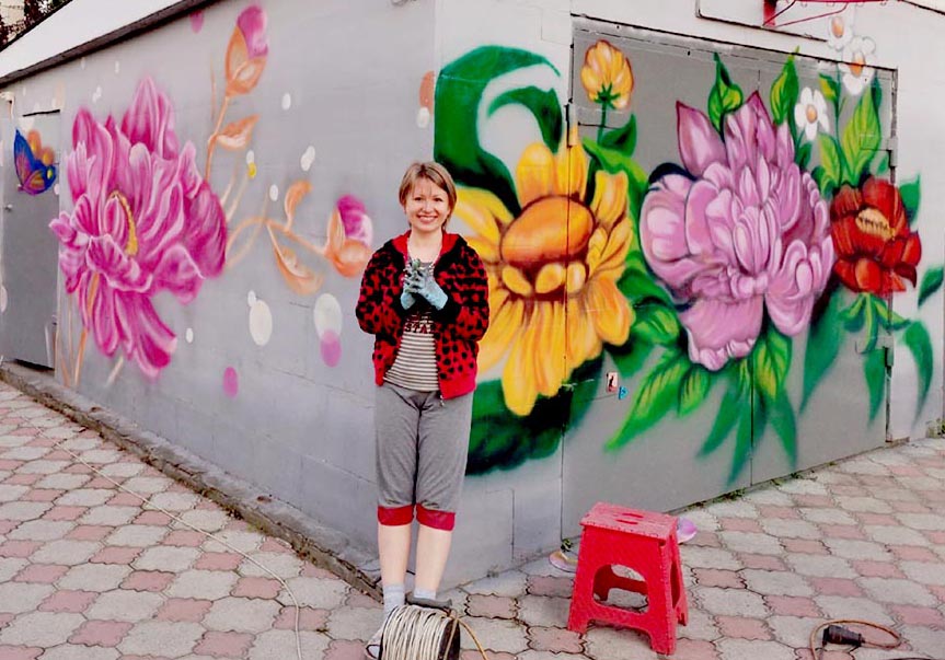 К ситуации с самоизоляцией, в которой оказались люди, можно подойти с разных сторон, и относиться к ней тоже по-разному. Это время ограничений, и с другой стороны – время для новых возможностей. Ограничения всегда рождают что-то творческое и новое. По сути, мы всегда ограничены – размерами холста, палитрой, бюджетом, временем. Во время самоизоляции я переориентировалась на роспись заборов, стен, гаража и прочих обычных поверхностей. Не быть же им такими серыми, скучными и зимой, и летом.