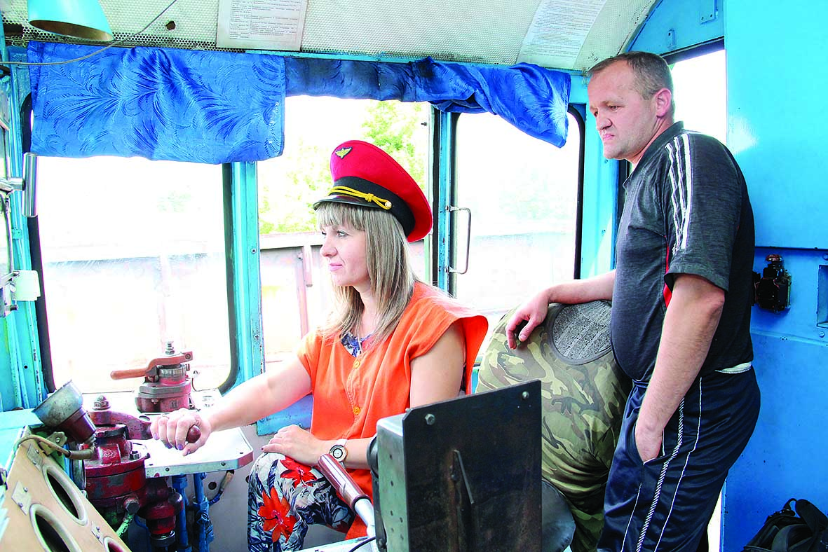 На станции нам рассказали, как функционирует путевое хозяйство. К примеру, чтобы вникнуть в работу составителя, пришлось заглядывать под вагоны. Ведь они не бантиком связываются, а сцепляются специальным механизмом. Вскоре мы поднимаемся по крутым ступенькам, и оказываемся в небольшой кабине машиниста тепловоза, где нас приветливо встречают машинист Виталий и его помощник Роман: «Техосмотр мы уже прошли, так что – едем!» Поезд тронулся, и если я принялась рассматривать виды из окна, то подруга - пульт управления. Обернувшись, я заметила, что под чутким руководством машиниста, на малых оборотах, она уже ведет состав.