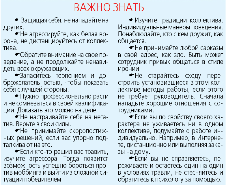Новое место работы нередко становится для человека испытанием на прочность. От того, как вас примет коллектив, во многом зависит не только душевное равновесие, но и карьерный рост. В ситуацию, когда травят всем миром, может попасть каждый. Как с этим справиться и выйти победителем, разбирался «ТГ»