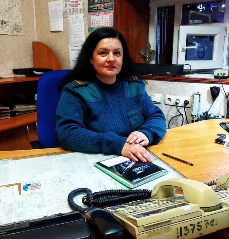 Радиотелефонист пожарно-спасательной части № 6 Краснодонского отряда МЧС, младший сержант Наталья Ковалева вот уже 17 лет работает плечом к плечу с краснодонскими спасателями. В задачи Натальи входит отвечать на звонки и по команде «Тревога» быстро собирать бригаду для выезда на пожар или иное происшествие.
