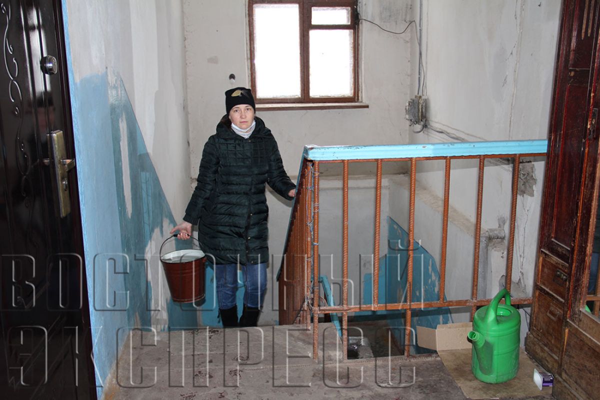 Во многоквартирных домах по поселку ситуация еще хуже. В те дни, когда вода поступает в частный сектор, на второй этаж, из-за слабого давления, она не выжимает. У кого есть возможность, в подъезде и подвале ставят баки, и с помощью автоматики качают воду в квартиры. Во время дождей вокруг этих домов полно разных емкостей: чашки, ванны, ведра, корыта, – так собирают воду, которая стекает с крыш. В одном из дворов даже вырыта яма для воды, которая находится под металлической крышкой с замком.