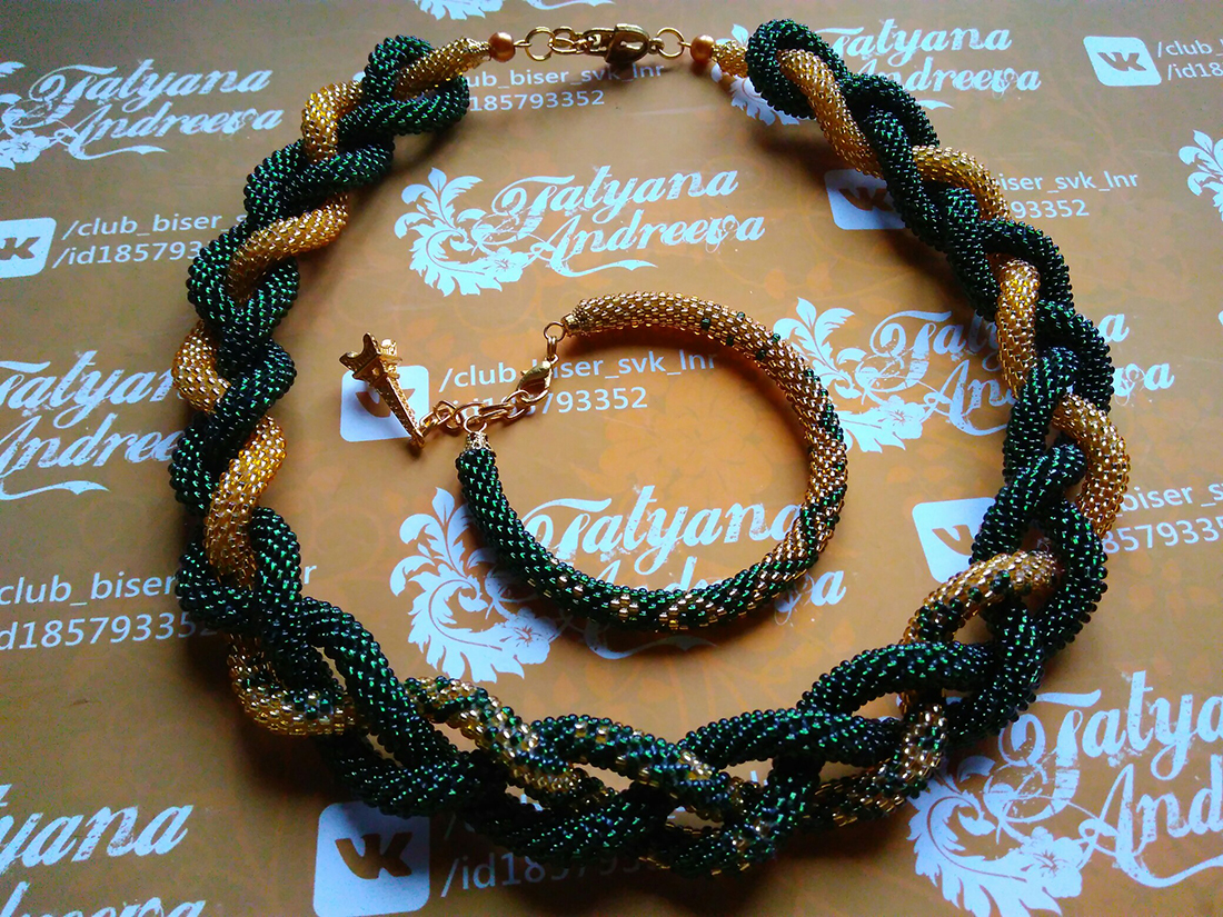Но самое сложное – это набор бисера на нитку и вязание по кругу, как в технике «змейка». Когда вяжутся такие жгуты, очень важно сделать точный набор, чтобы не ошибиться, потому что в противном случае сбивается рисунок. Признаться честно, далось мне это очень нелегко, так как с крючком я вообще не дружила, а тут надо было работать именно с ним. Помню, в детстве так и не научилась им вязать. Два месяца билась безрезультатно, множество уроков пересмотрела, уже даже начала выходить из себя, потому что ничего не получалось. Думала: «Ну неужели я настолько криворукая неумеха?», но все равно не останавливалась. И мне повезло, я нашла хороший мастер-класс, где все детально было показано. Все сдвинулось с мертвой точки. У меня получилось! Когда это освоила, сперва делала самые простые рисунки, постепенно набирая обороты, затем создавала более сложные работы разной толщины.