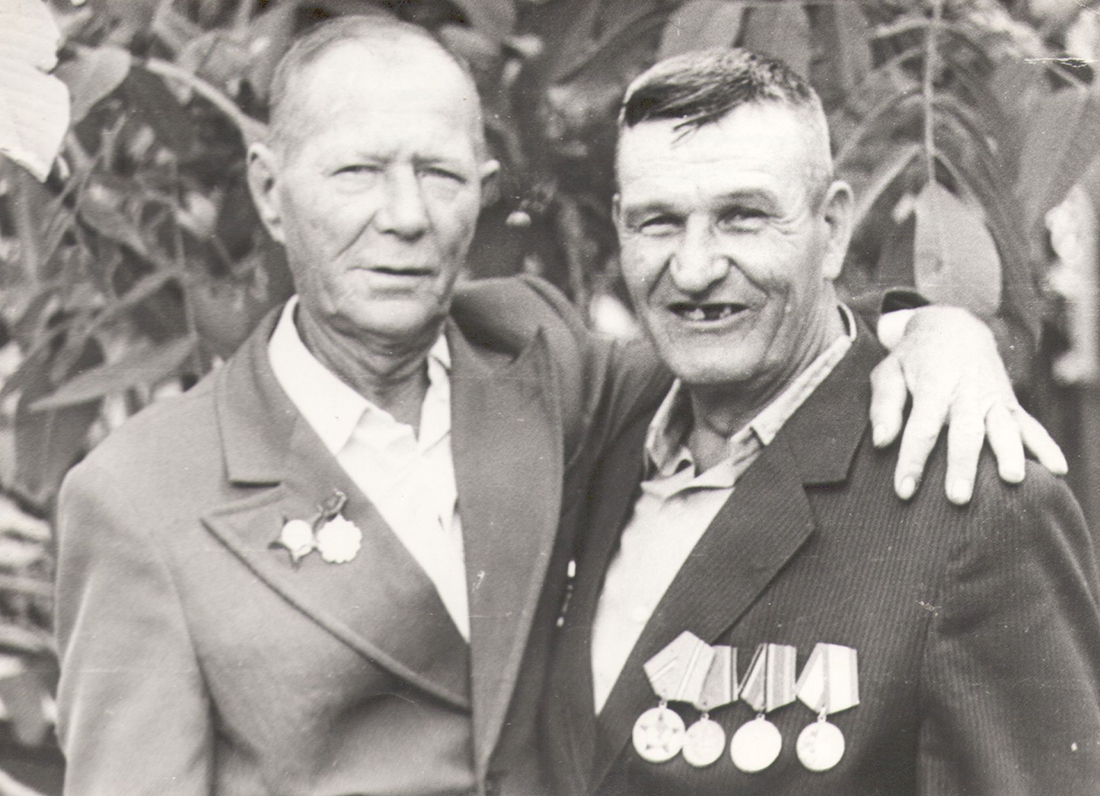 В Карпово-Крепенском нас встретил второй ветеран, Иван Петрович. На тот момент фронтовики не виделись 42 года, поэтому узнали друг друга не сразу, а только по особому паролю, известному только им. «Іван, це ти?», – крикнул боевому другу Константин Беликов. «Костя! Живой!!!», – ответил Иван Алейников. После чего два друга крепко обнялись. И это был стоп кадр, в центре которого наши герои, а на заднем плане – я и супруга Ивана Петровича. А дальше были долгие разговоры и планы о поездке в хутор Добрянский Волгоградской области.
