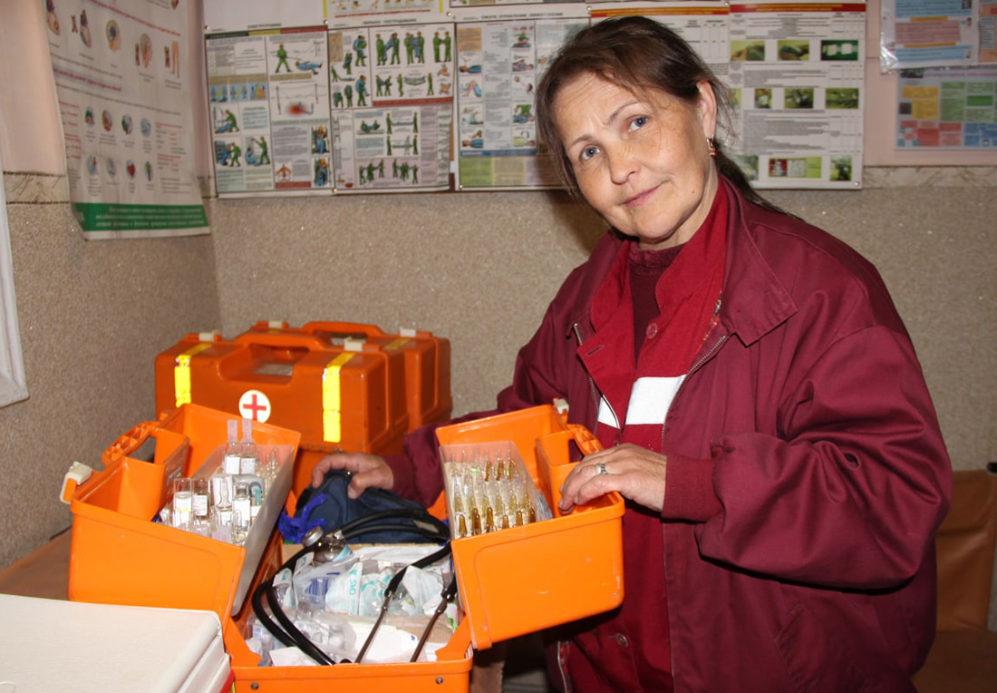 Фельдшер Людмила Бондарец перед выездом на вызов