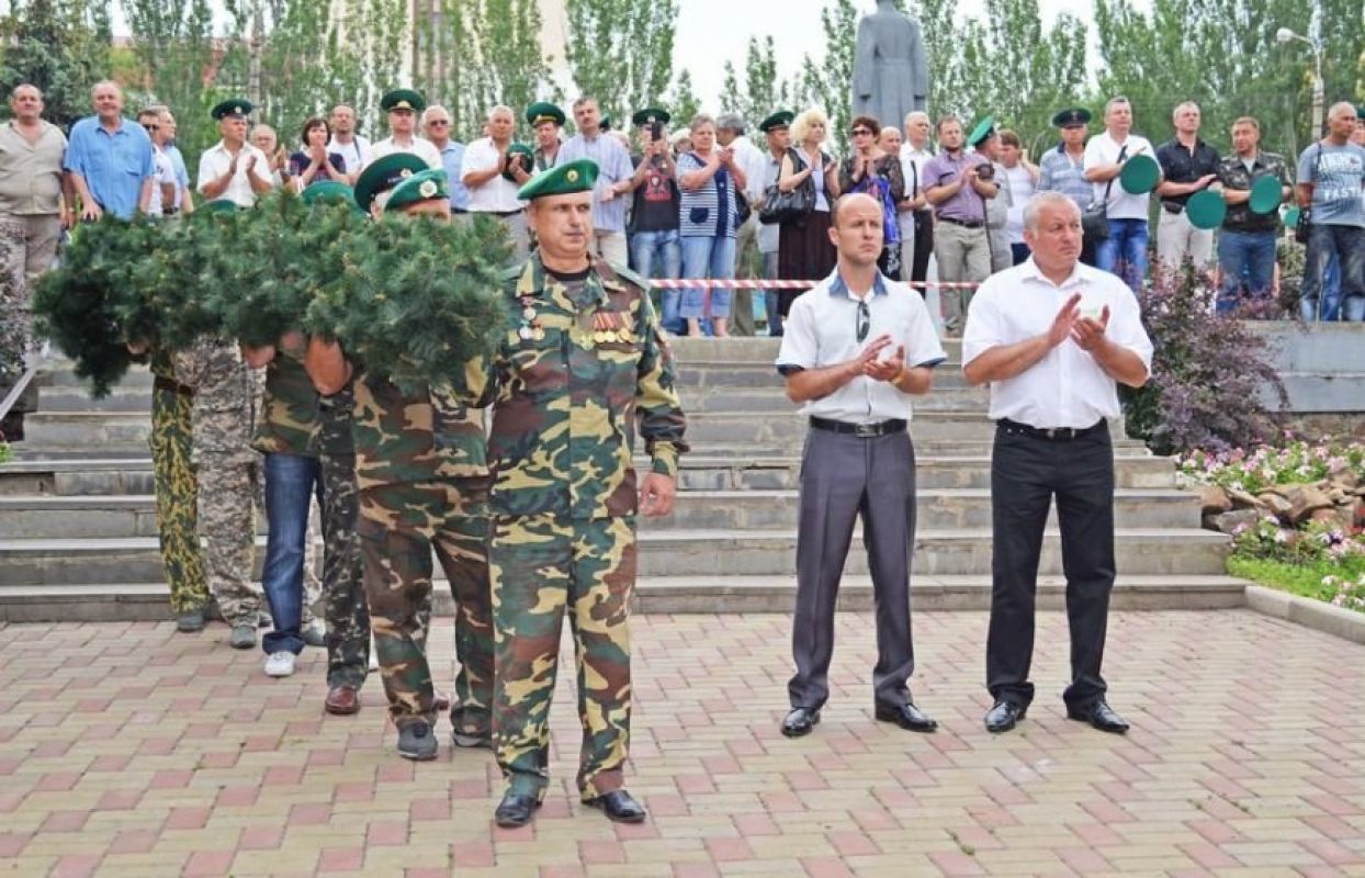 Председатель содружества ветеранов погранвойск Луганщины «Союз-Граница» Алексей Сердюков поздравил участников митинга с их праздником и наградил ветеранов пограничных войск грамотами.