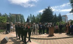 В Сквере пограничников в столице Луганской Народной Республики прошла церемония в честь профессионального праздника ветеранов и нынешних военнослужащих пограничных войск, который ежегодно празднуется 28 мая.