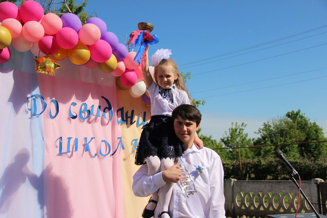 И вот наступил самый трогательный момент – звучат трели последнего в этом году школьного звонка. По традиции его дают лучшие ученики 11 и первого класса. Выпускник сажает первоклассницу на плечо и гордо несет ее перед учениками. Девочка с огромными белоснежными бантами звенит колокольчиком и задорно улыбается всем собравшимся.