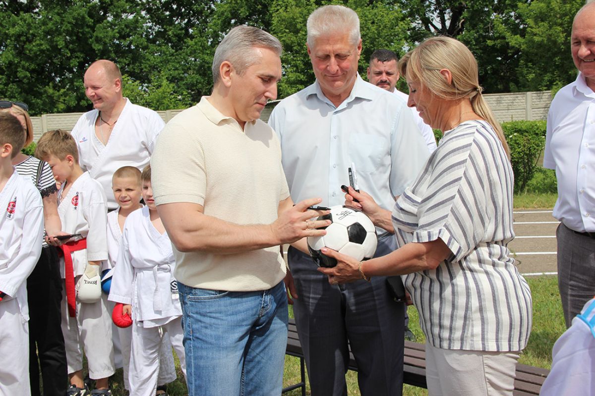 Футболистам подарили новые мячи. На одном из них губернатор оставил свой автограф.