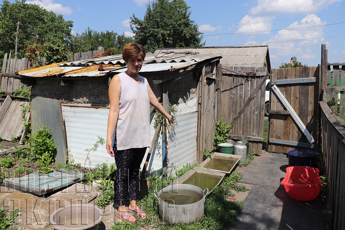 – Родом я из поселка шахты № 74, – говорит Ирина Александровна. – Но как вышла замуж, два года назад, переехала сюда. Здесь такое раздолье, красивая природа, но быт не устроен. Со светом и связью проблем нет, а вот с водой – просто беда! Приходится ее покупать и набирать во все емкости. Но этих запасов, особенно, когда есть маленькие дети, явно не хватает: нужно попить, приготовить покушать, искупаться. В открытом виде у нас хранится вода на бытовые нужды: постирать, полы помыть.