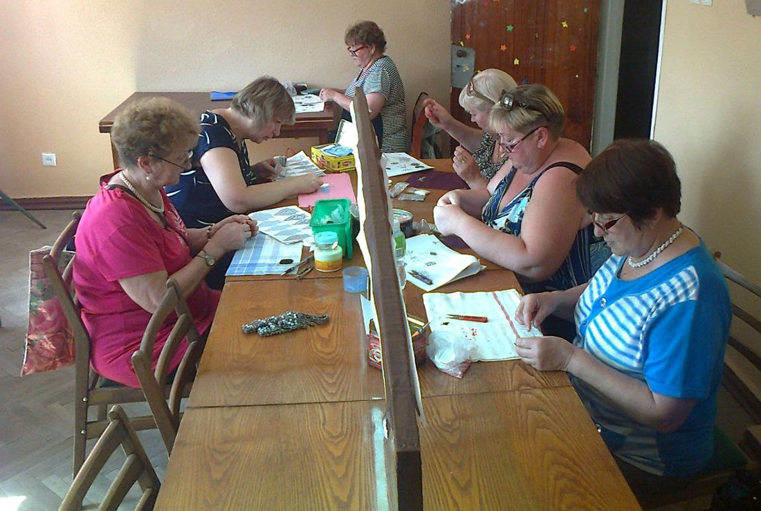 Одной из самых взрослых, уважаемых и опытных учениц является Лидия Ильинична Шадевская. Занимается она практически с момента создания кружка. Оксана Александровна Афанасьева трудится на санитарно-эпидемиологической станции, Татьяна Зосимовна Булгакова – врач-стоматолог, Ирина Александровна Сулейман – медсестра. Тамара Георгиевна Искрук мастерски вышивает иконы бисером, которые представляла на мероприятии ко Дню пожилого человека в Суходольске. Первое украшение, которое она сделала, – широкое колье, вышитое янтарем. Правда, делала она его два месяца.