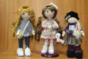 Мастерить игрушки я стала очень давно – наверное, уже более 10 лет. Я росла в творческой семье, у меня отец – художник, и мама шьет, в этой атмосфере я воспитывалась и росла. Так, наверное, еще с малых лет и сформировалась любовь к рукоделию. Когда-то давно рисовала, ведь я по образованию – художник, а потом все-таки отдала предпочтение шитью. Начинала я с трикотажных зайчиков и мишек. Первой игрушкой, которую я сама сделала, был заяц наподобие «Тильды», у него были такие же длинные ушки. Потом в интернете стала просматривать картинки и других игрушек. Благо, сейчас доступ к такой информации открыт, и ее очень много. На разных сайтах женщины и девушки выкладывают фотографии вот таких игрушек. Однажды мое внимание привлекли куклы, мне очень понравились эти работы, и я прямо загорелась желанием попробовать это повторить. Ну, картинка есть, а вот схемы какой-то, как же ее делать – нет. Приходилось самой очень долго их искать, делать выкройки, а позже заниматься поиском самого материала. У нас же с этим проблема – сложно найти все необходимое. И вот когда все собирала, начинала шить, и мне так понравилось это занятие, что я даже не заметила, сколько ушло времени на создание первой куклы. И продолжила этим заниматься, поначалу для себя, потом близким дарила, а дальше уже решила продавать. Только на шитье я не остановилась, и стала делать игрушки из фетра, поделки из фоамирана, освоила технику валяния и лепки из полимерной глины. Все, что мне в интернете нравится, я пробую это сделать в реальности самостоятельно. Вот так заинтересовал меня мишка: ну, думаю, а почему бы не попробовать. Если меня зацепило, понравилось, то я продолжаю. Иногда бывает, что работа мне просто не пошла, и я могу не заниматься этим дальше. Из последнего, что я сделала, были заяц и мишка в технике валяния. Еще делаю кружечки из полимерной глины, лепку на них, куклам лица, ноги и руки, а остальное для них – уже сшитое.