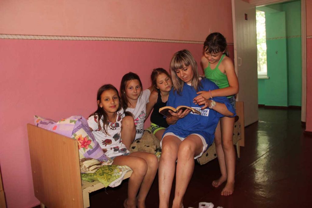 Дайте нам трудный участок Едва успев на рейсовый автобус, который идет всего два раза в день до самого сказочного места в нашем районе - «Королевских скал» - мы помчались навстречу детству. Помчались, конечно, - это громко сказано! Потому что по местной автостраде на кочках и ямах автобус идет медленно, как «каравелла» по волнам, медленно покачиваясь. Спустя час, терпкий запах трав заповедного уголка нетронутой природы тонко так намекнул, что мы прибыли к месту дислокации. Приведя фотоаппарат в боевую готовность, мы отправились к директору лагеря – Евгению Зайчуку, за расписанием рабочего дня. Пока бежали в здание администрации, по пути успели сделать несколько снимков. Особенно нас привлек 13-й отряд. Дружный и поющий строй детворы не мог не привлечь к себе внимание. Как выяснилось позже, ребята распевались к вечернему конкурсу песен.