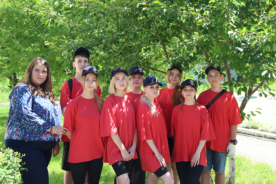 На протяжении месяца (со 2.06.2022 по 30.06.2022) дети приходят в школу и выполняют свою работу. Следит за трудовой дисциплиной своих подопечных и организовывает их работу учитель географии Ольга Кудряшова.