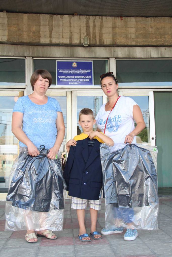 Мама Оксана и первоклассник Евгений: – Огромное спасибо за форму и рюкзаки. Это огромная помощь для родителей (Оксана) - В школу, конечно, не хочется, но форма понравилась, и рюкзак классный, только тяжелый (Евгений)
