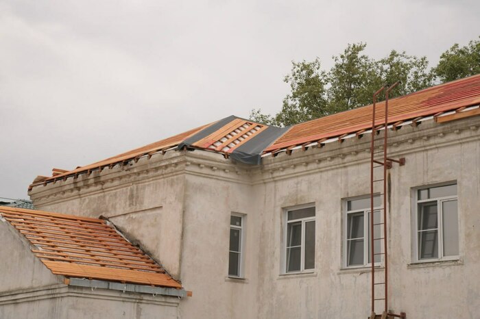 Бригадир Руслан Чебодаев рассказал, что была демонтирована старая кровля, а для новой стропильной системы использовали сосну, обработанную огнебиозащитой. В учреждении также заменили 124 окна, установили на крыше ограждение, молниеотвод и водосточные системы.