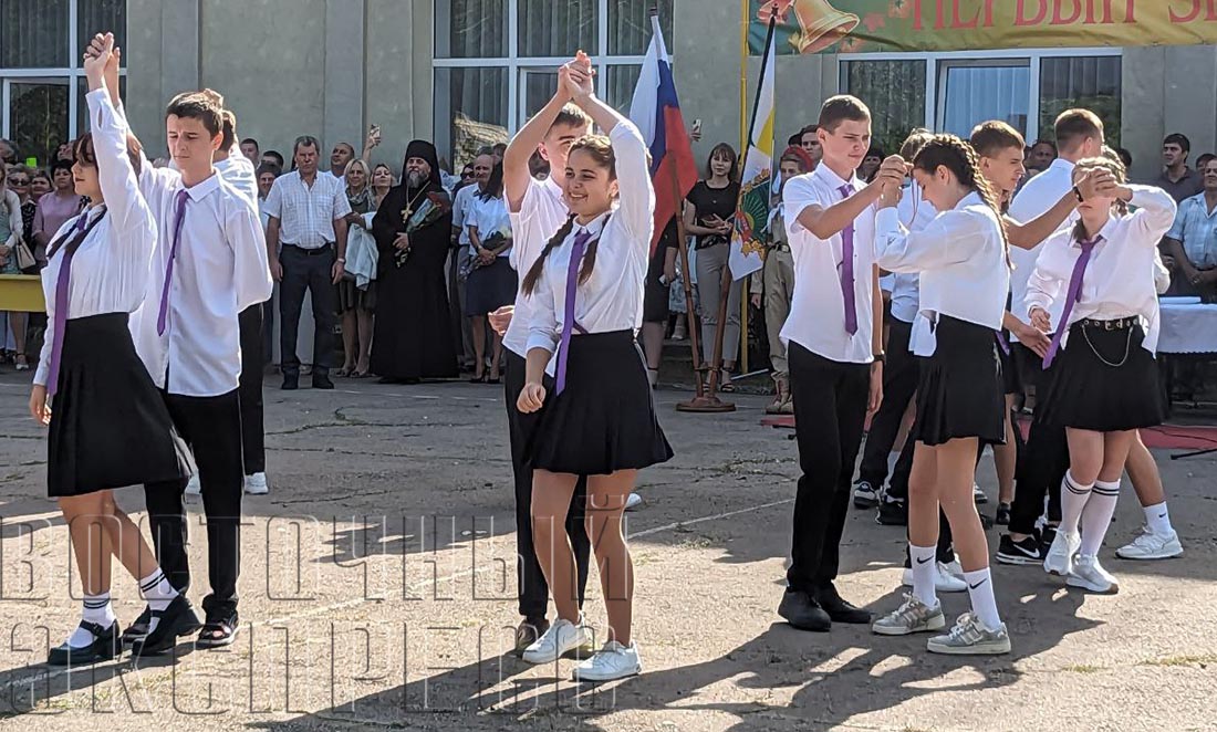 Новую страницу жизни уже готовятся перевернуть девятиклассники, для многих из них этот школьный год станет последним, и во время своего музыкального поздравления они отпустили шары в воздух. На праздничной линейке торжественно зачитали поздравительное письмо врио главы ЛНР Леонида Пасечника. Традиционную напутственную речь произнес директор школы, также свои поздравления ученикам, учителям и родителям подготовили учащиеся старших классов.