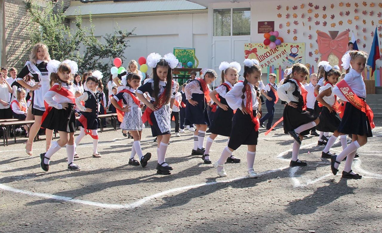 Юным школьникам подарили алые ленты с надписью «Первоклассник» и необходимую канцелярию от главы Республики Леонида Пасечника.