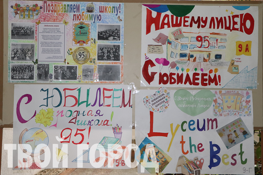 Лицей расположен в центре города, на перекрестке дорог, а значит – всегда на виду. По утрам детвора со всего города спешит сюда на занятия. Каждый пешеход или пассажир, глядя на тематически украшенные окна, догадывался о празднике. А вот внутри здания, в тишине, пока шел урок, результаты подготовительных работ детей и взрослых можно было увидеть и изучить на ватманских листах, прикрепленных к многочисленным стендам.