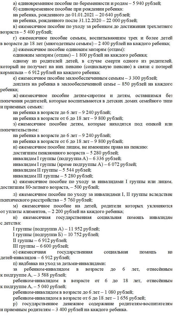- единовременное пособие при рождении ребенка (т.к. повышение уже прошло в январе 2021), размер - 22 000 рублей;