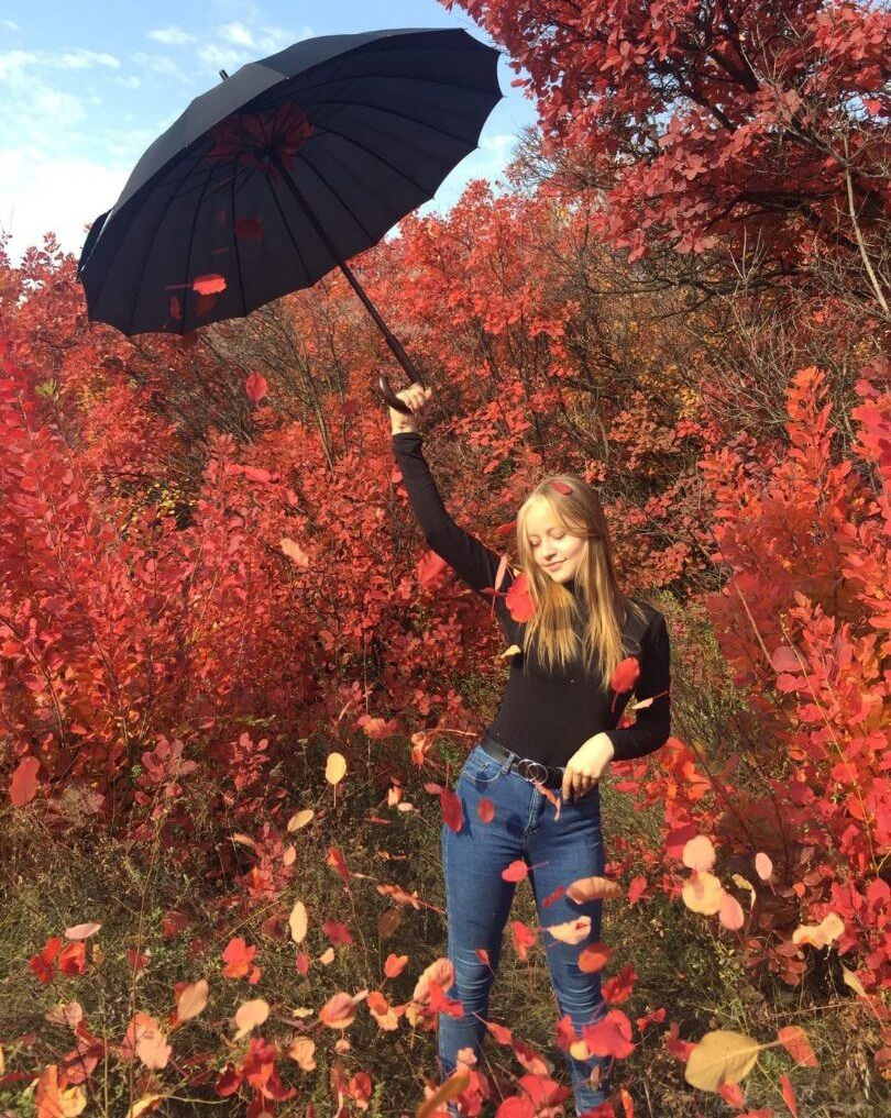 Первое место заняла Дарья Колбас, девочка с прекрасными длинными волосами, которые играли всем своим великолепием на фоне яркой осенней листвы.