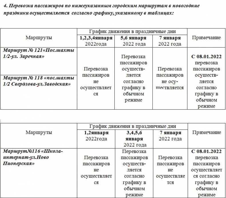 Администрация Свердловска и Свердловского района опубликовала график работы городского общественного транспорта в городе в период новогодних праздников (с 1 по 10 января 2022 года).