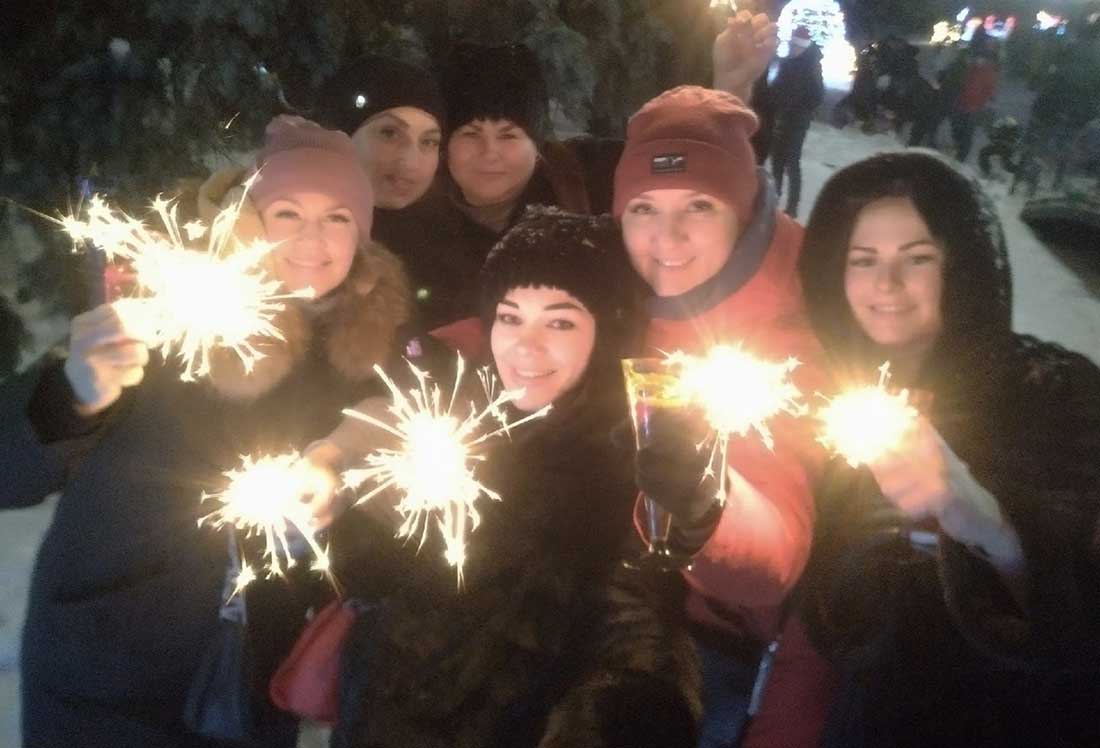 В шахтерском сквере вечером 31 декабря собралось немало людей. Ближе к полуночи их становилось все больше. Недалеко от фонтана собралась компания с музыкальной колонкой и хорошим настроением. Они пели и танцевали, чем привлекали к себе взгляды прохожих. Дети бегали по площадке, лазили по горкам, играли в догонялки. Некоторые рассекали по скверу на ватрушках, причем, так резвились не только дети, но и взрослые. Все это сопровождалось криками и смехом. Глядя на это, так и хотелось присоединиться к ним. Вот что значит весело встретить Новый год.