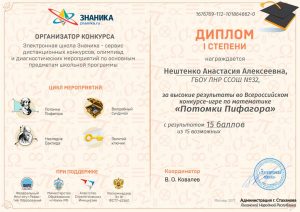 Во Всероссийском математическом конкурсе «Потомки Пифагора», который проходил в Москве с 24 по 28 ноября, ученики Стахановской СОШ № 32 показали отличные результаты.