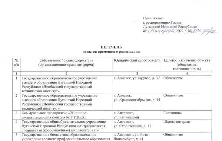 Соответствующее распоряжение опубликовано на сайте Главы ЛНР.