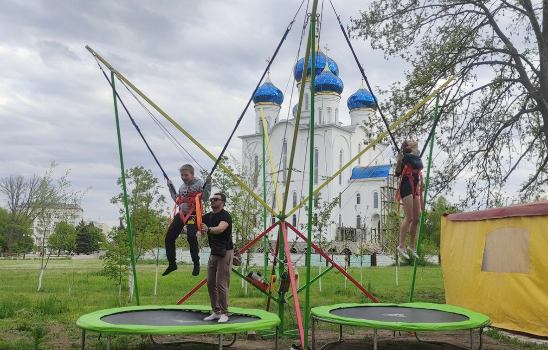 В теплое время года работает парк аттракционов. Недалеко от танцплощадки есть тренажеры и спортивные элементы.