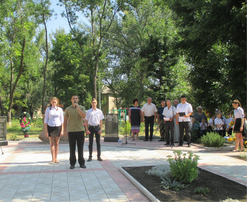На митинге выступили голова исполнительного комитета Суходольского городского совета Татьяна Хохлова, заместитель председателя ОО «Союз народного ополчения «Русь» Виктор Ферко, заместитель Главы Администрации города Краснодона и Краснодонского района Владимир Шавлай, представители общественности. Протоиерей Храма Ксении Блаженной Петербуржской Вячеслав Берчук обратился к присутствующим со словами молитвы об убиенных и пожелал всем мира и благополучия. К Памятному знаку возложили цветы и зажгли поминальные свечи.