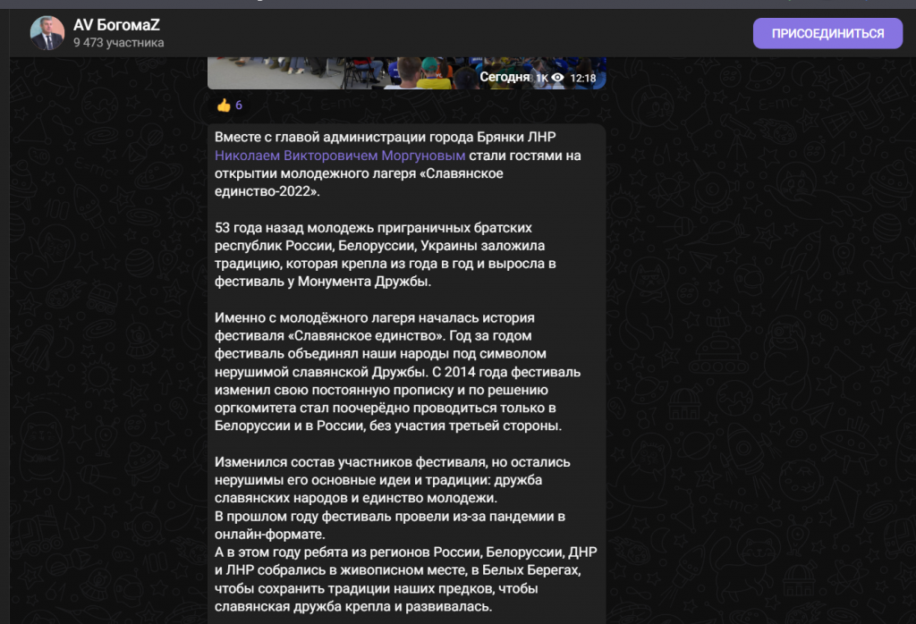 По словам губернатора, даже если состав гостей изменился, цель мероприятия осталась неизменной. Для славянских стран это праздник дружбы и единства, и ради этих целей молодёжь России, Беларуси, ЛНР и ДНР собралась в этот день в Белых Берегах.