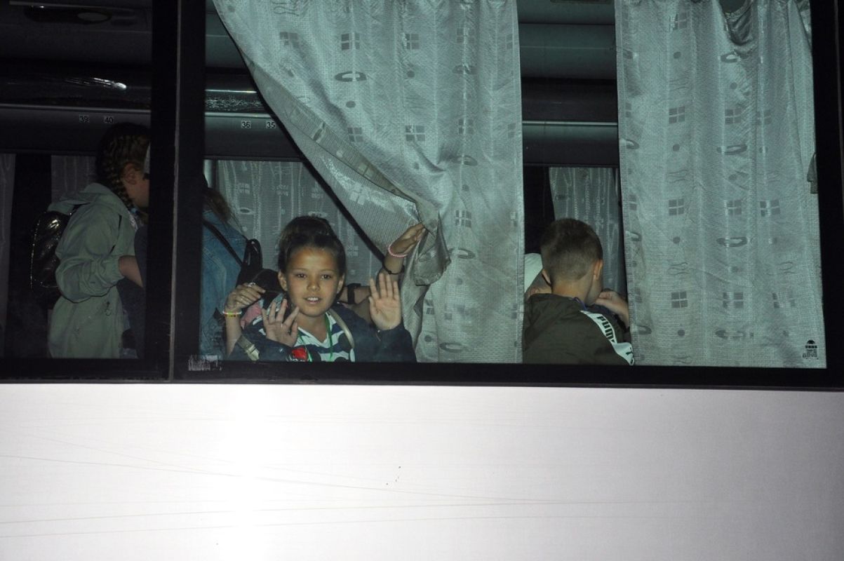 Рано утром группа из 180 детей выехала в детские лагеря «Парус» и «Золотая Коса» в Таганрог. Ребята будут отдыхать на побережье Азовского моря до 29 августа.
