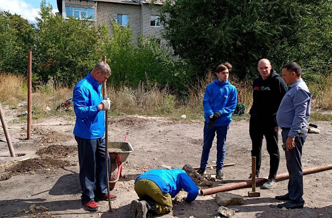 В Суходольске с 7 сентября устанавливают ограждения на точках сбора ТБО. Начали с контейнерной площадки, расположенной около домов 2а и 2б на улице Ленина. Сначала вокруг этой точки сбора ТБО ликвидировали стихийную свалку, вывезли строительный и крупногабаритный мусор. С помощью российских волонтеров копали лунки под столбы, которые будут служить опорами, устанавливали и бетонировали их.