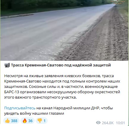 Народная милиция ДНР уточнила, что все заявления вооруженных сил Украины – дезинформация, артерия Кременная-Сватово под надзором союзников.