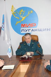 В понедельник 15 января Свердловск посетил министр чрезвычайных ситуаций Сергей Иванушкин. В приемной ОД «Мир Луганщине» с Сергеем Сергеевичем важные вопросы, касающиеся безопасности города, обсуждали Глава Администрации Андрей Сухачев и начальник Свердловского ГПСО МЧС, полковник службы гражданской защиты Валерий Тельпис. После чего министр МЧС пообщался с журналистами, среди которых был и корреспондент Твойгород.com