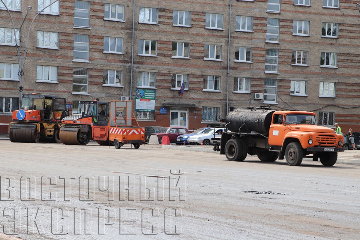 В среду, 28 июня, на центральной улице Свердловска было перекрыто движение: там начались работы по укладке нового дорожного покрытия. Проезжая часть в районе Площади Мира с одной стороны частично уже была залита смолой, а на другой промышленным пылесосом рабочие очищали ее от пыли, подготавливая поверхность к нанесению связующей смеси.