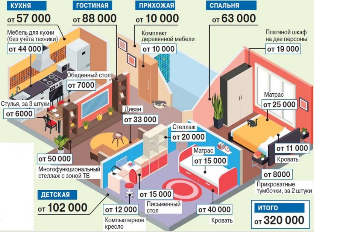 Что касается минимальной стоимости мебели, то выглядит она следующим образом: