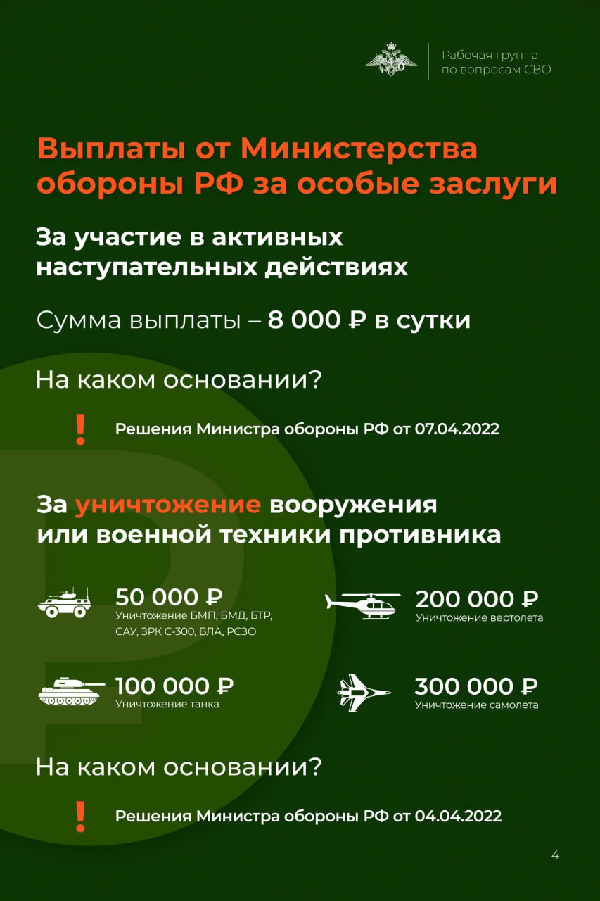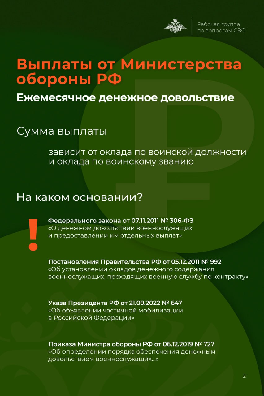 Подробнее о имеющихся выплатах для военнослужащих описано в карточках: