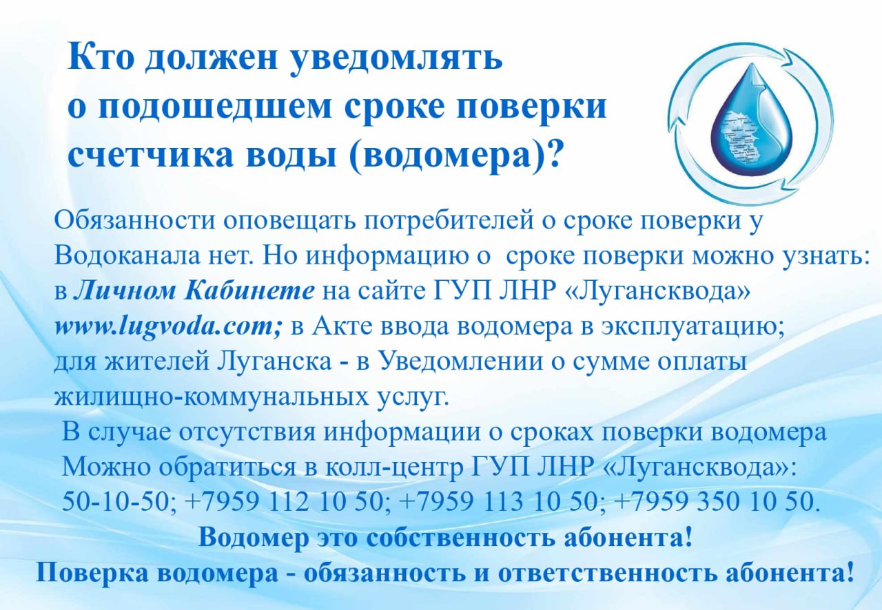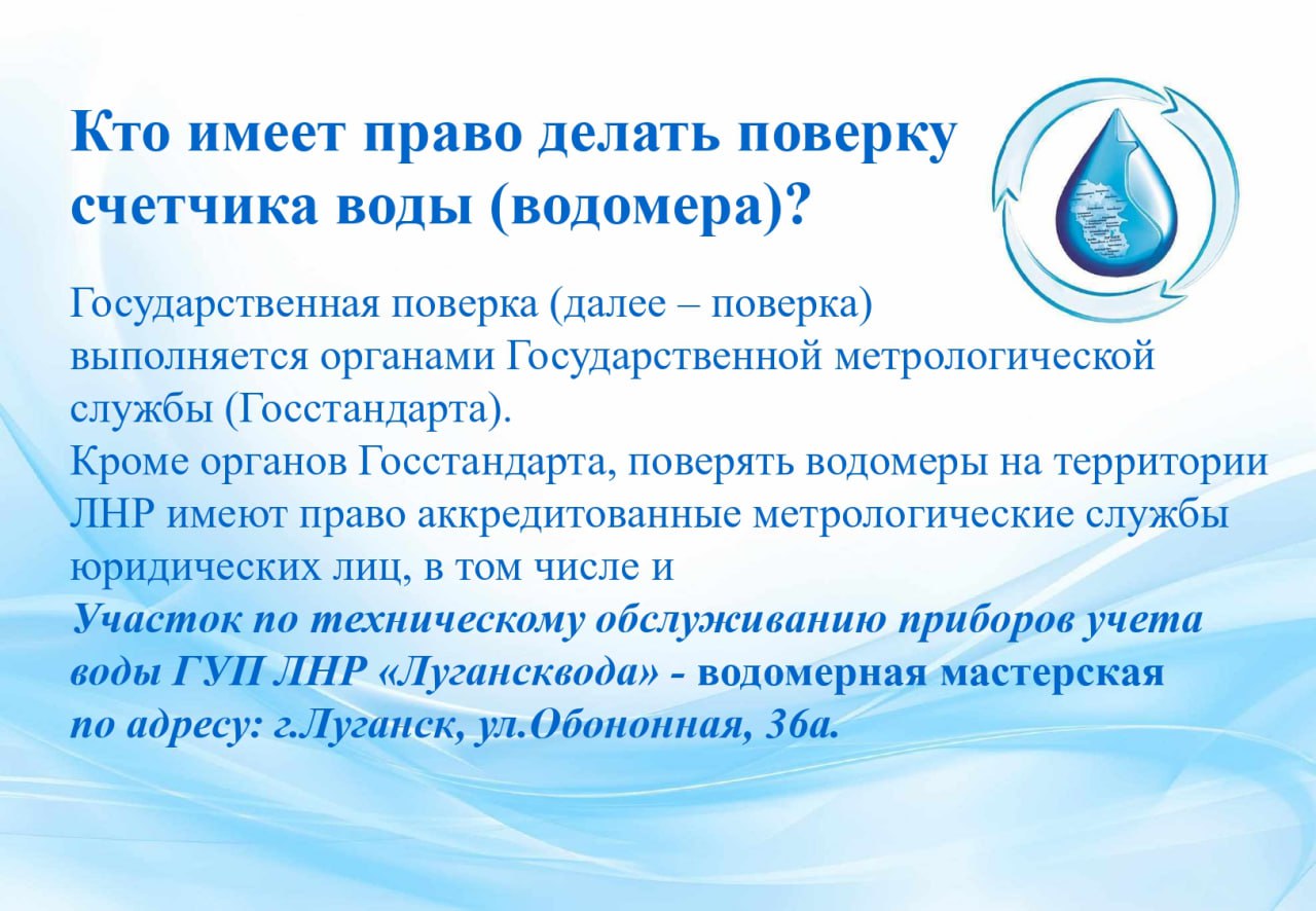 Предприятие «Лугансквода» собрало всю информацию, касающуюся поверки водомеров в ЛНР. Жителям Республики подробно разъяснили, кто имеет право делать эту услугу и когда она вообще требуется.