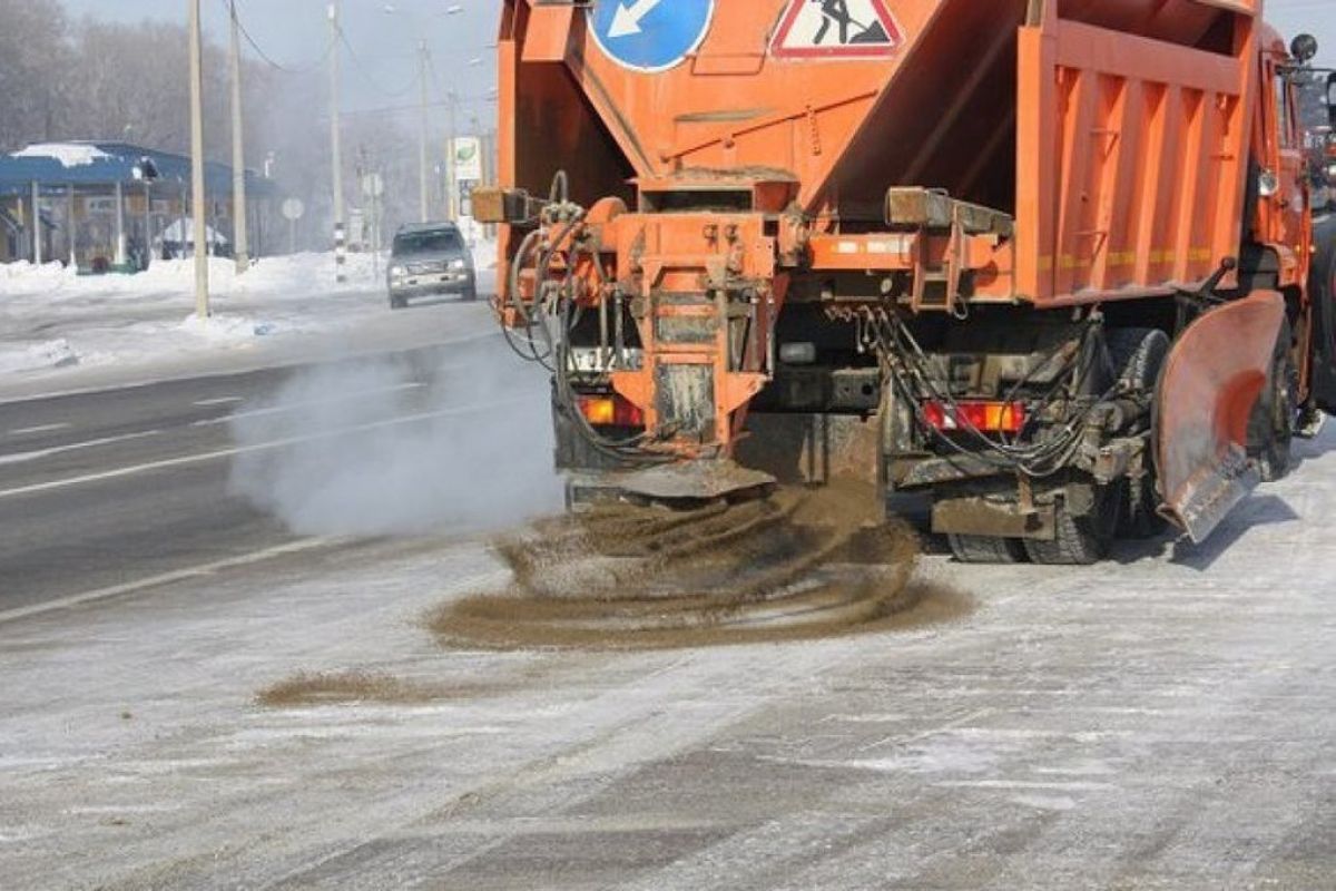 Дорожные службы ведут работу на основных автомагистралях ЛНР по посыпке трасс противогололедными смесями.