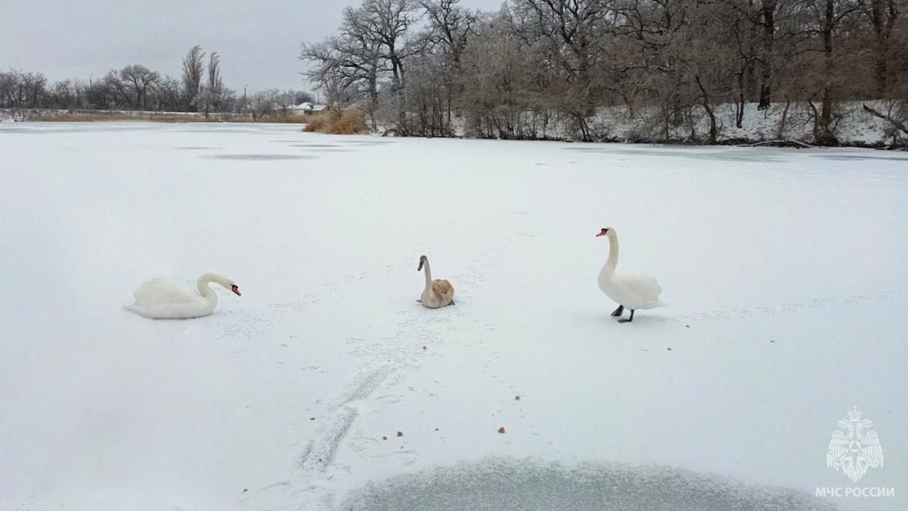 Спасатели вызволили вмерзших в лёд лебедей в одном из городов ЛНР