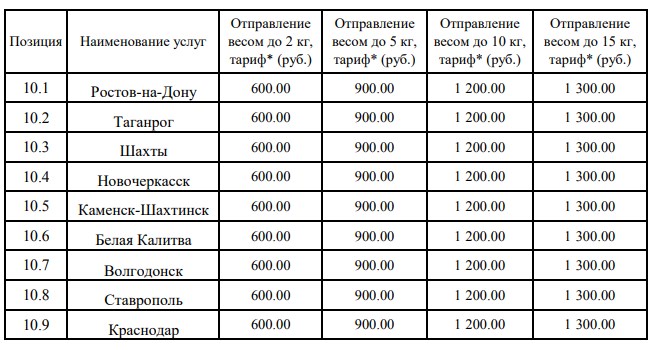 Стоимость посылки в разные города следующая: