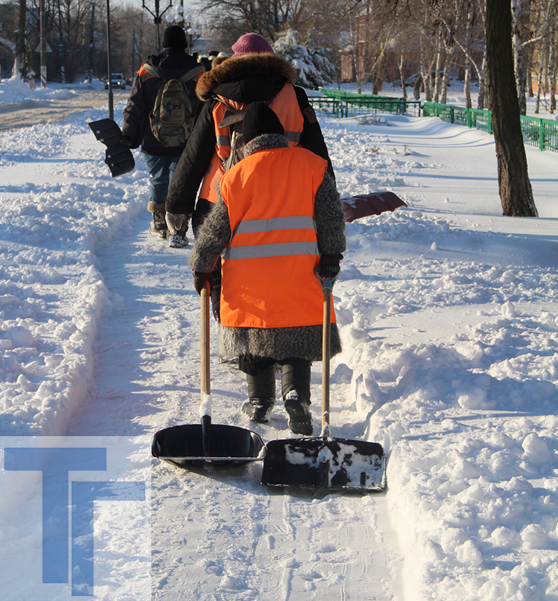 Удивили в то утро широкие проходы в снегу, прямо-таки настоящие «столбовые дороги» на пл. Мира. Как и когда дворники успели все это сделать? Оказалось, по просьбе мастера подходы к лицею, ЗАГСу, ДК, памятнику Ленину проложил небольшой трактор. «Спасибо ему, самим нам бы очень трудно пришлось», – признается Валентина Царюк. Сама Валентина Валерьевна чистила снег наравне со всеми, хоть и отдежурила ночью.